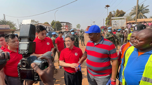 李说,习近平主席教导我们要牢记“人民至上”。前不久胜利召开的中央外事工作会议强调要以建设持久和平、普遍安全、共同繁荣、开放包容、清洁美丽的世界为努力目标,推动构建人类命运共同体。中国人常讲:“一屋不扫,何以扫天下?”新年伊始,我们同图瓦德拉总统和班吉乡亲们一起除旧布新,就是要告诉大家,中国中非是兄弟,兄弟姐妹一家亲。我们在班吉所作的一切都是为了增进两国人民的福祉。让我们从眼前做起,从点滴做起,从脚下做起,一起推动人类命运共同体理念在中非60多万平方公里土地上、600多万人民心目中落地生根、开花结果。