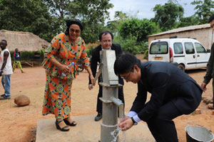 大家一起进小学、入农家、察农田、压水井。在学校,与孩子们一起坐在泥土堆砌的课桌旁,听他们用稚嫩的声音朗诵课文。在农家,一边看着新孵出的小鸡叽叽蹦跳和即将出栏的小猪嘟嘟乱拱,一边交流着一年的收成和收入。在农田,踏着热土,留着热汗,从木薯到玉米再到南瓜和豆角,仔细了解每种庄稼的长势,探讨如何增产增收。在井旁,亲自操作那老旧的手压柄,每次用力下压,清澈的地下水便汩汩涌出,滋润着龟裂的土地,也浸润了大家的心田。