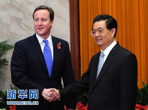 2010年11月10日上午,国家主席胡锦涛在人民大会堂会见了英国首相卡梅伦。