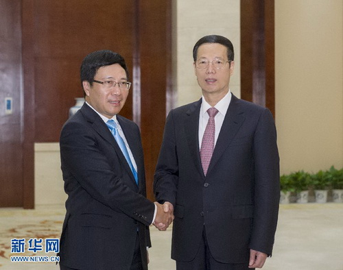 在会见范平明时,张高丽表示,中越两国加强团结合作,谋求共同发展,推进社会主义事业,具有特殊重要意义。中方愿认真落实两党高层达成的重要共识,始终坚持睦邻友好与互利合作的大方向,妥善处理双边关系发展过程中遇到的问题,推动中越关系在健康稳定的轨道上发展。真诚希望越方重视中方重大关切,双方相向而行,推进中越全面战略合作,给两国人民带来实实在在的利益。