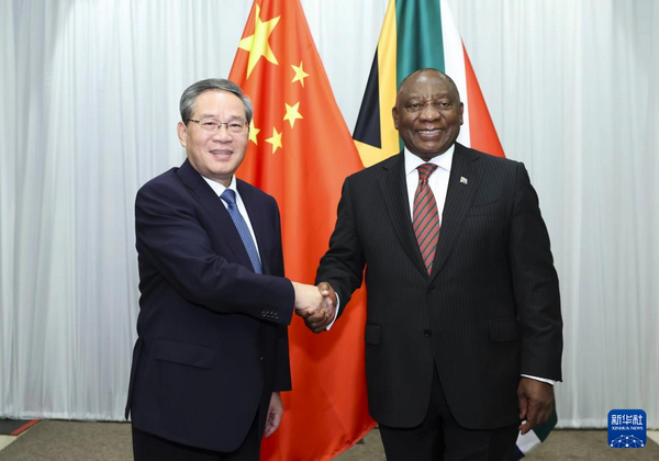 拉马福萨请李强转达对习近平主席的亲切问候和良好祝愿,表示习近平主席同我就建立两国新时代全方位战略合作伙伴关系达成重要共识,推动南中关系迈上历史新高度,为深化双边各领域合作注入强劲动力。南非坚定不移奉行一个中国政策,重申台湾是中国领土不可分割的一部分,将同中方继续在涉及彼此核心利益的问题上相互支持。感谢中方为南非经济社会发展提供的支持和帮助,愿同中方加强贸易、投资、矿业、工业、科技、能源基建、医疗卫生、减贫等领域合作,造福两国人民。南非愿为中国企业在南投资兴业提供安全、良好环境,并同广大非洲国家一道用好中方优惠政策,推动中非合作深入发展。南非高度赞赏习近平主席提出的四大全球倡议。中国支持南非主办二十国集团领导人峰会,为会议达成共识和成果发挥重要作用,南方表示衷心感谢,愿同中方密切在联合国、二十国集团等多边框架内的沟通协作,共同捍卫多边主义。